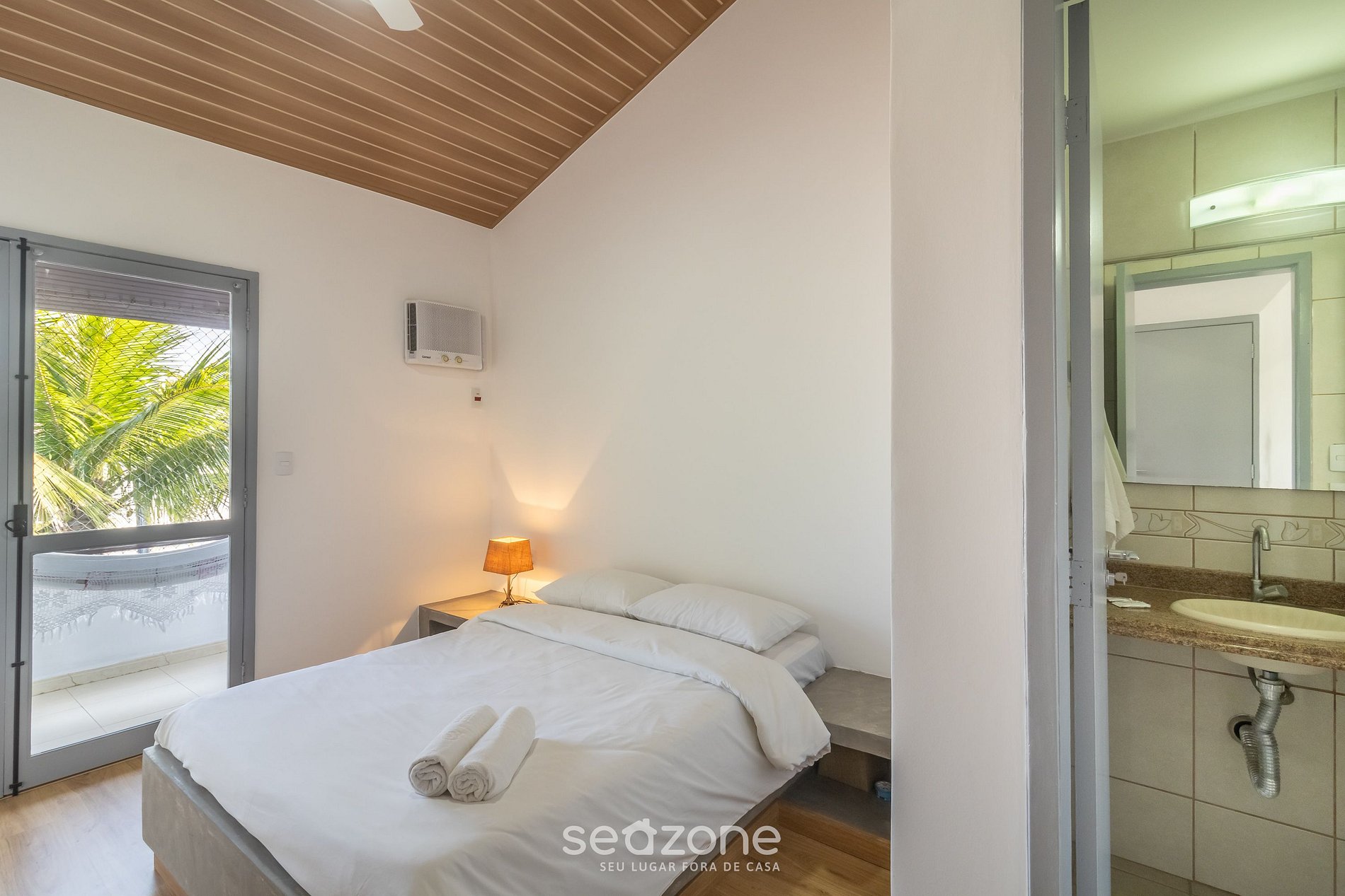 - Roupas de cama/banho e limpeza extras são solicitadas e pagas à parte, direto com a Seazone;
