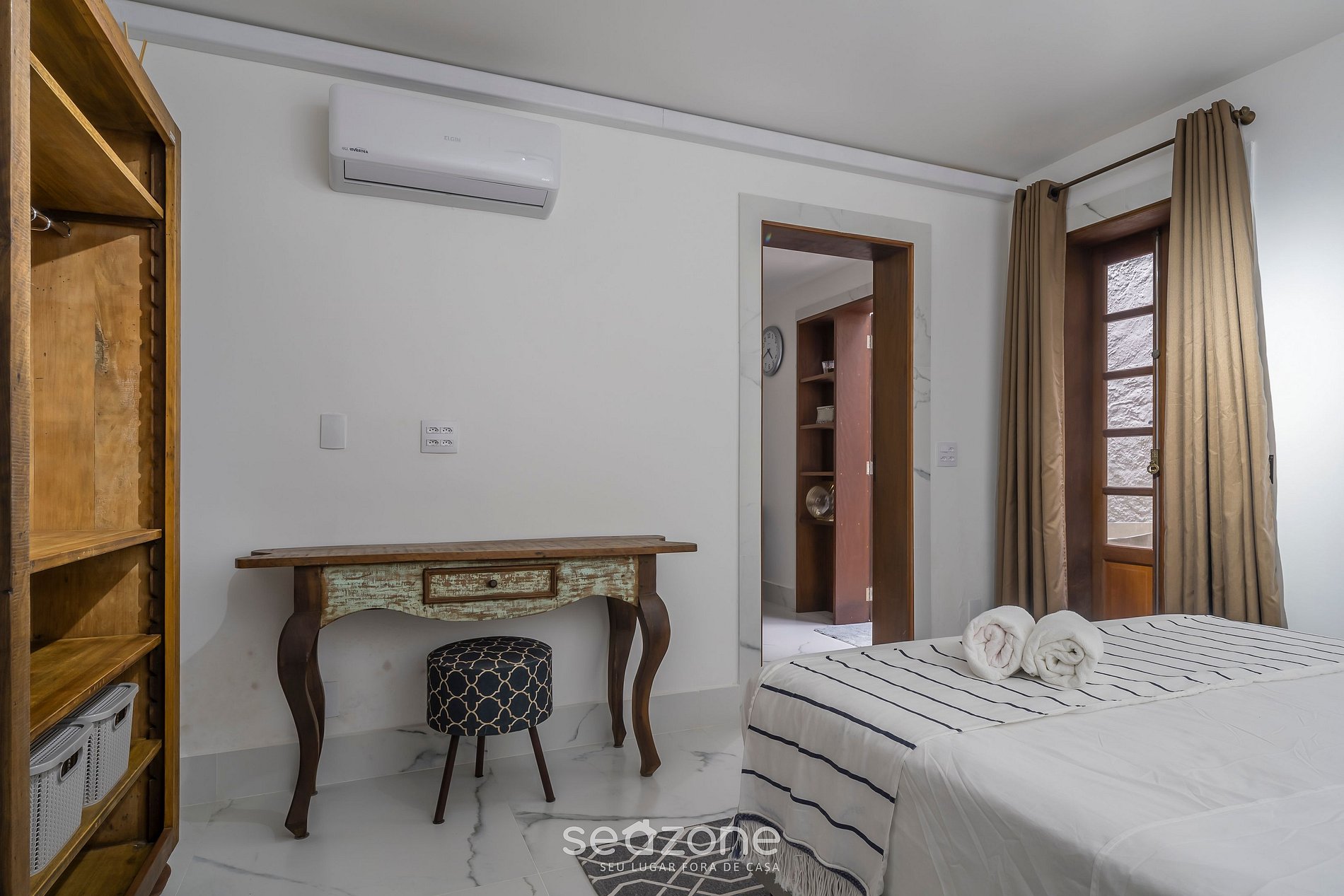- Roupas de cama e banho de qualidade hoteleira (roupas de cama e toalhas extras são cobradas pela Seazone)