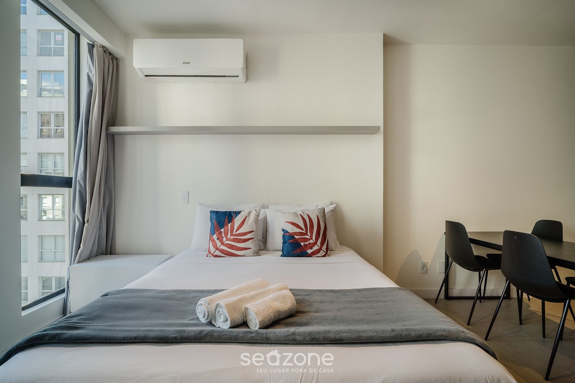- Roupas de cama e banho de qualidade hoteleira (roupas de cama e toalhas extras são cobrados pela Seazone);