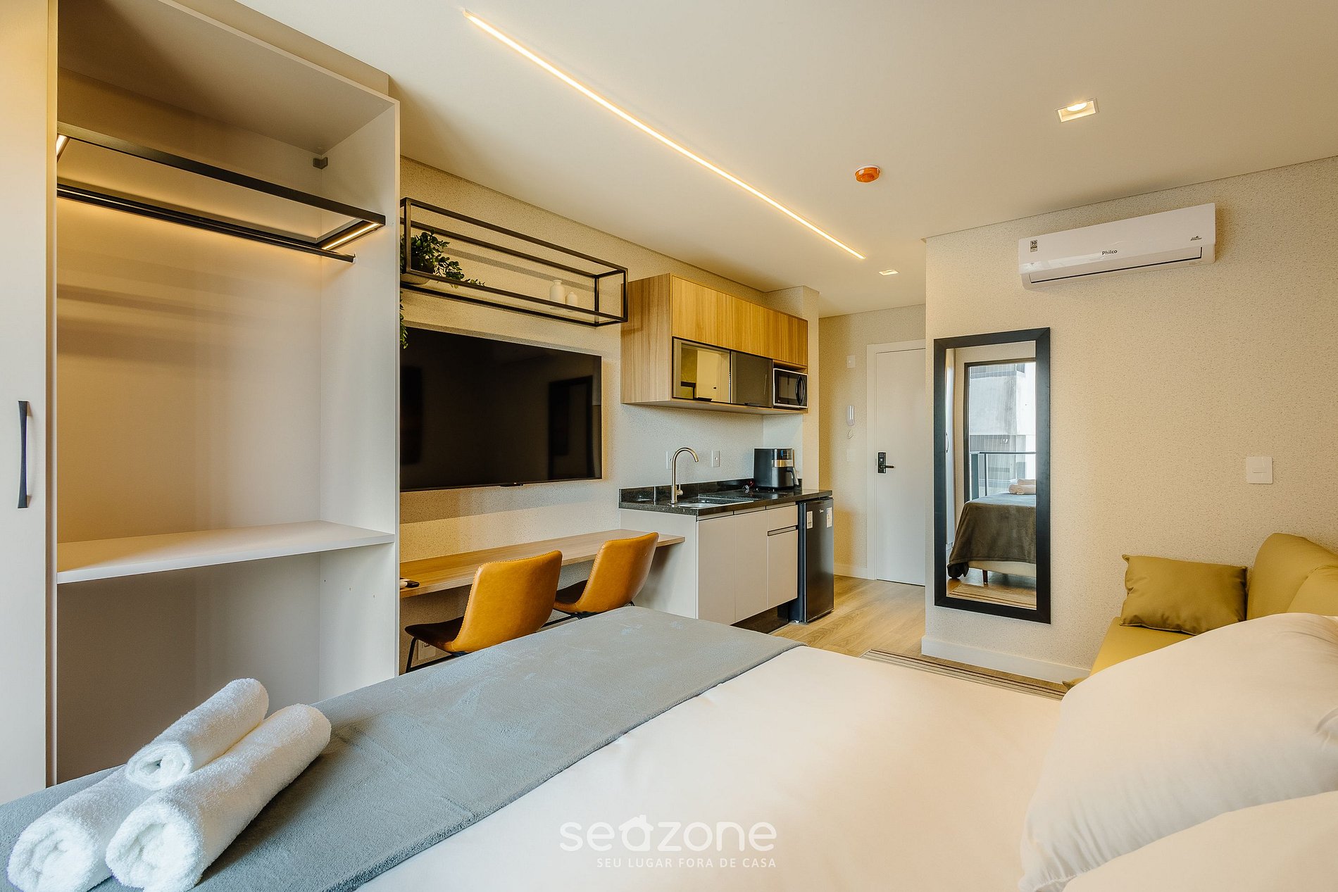 Nossos estúdios são pensados para oferecer o máximo de conforto e praticidade, garantindo que sua estadia em Penha seja leve e memorável.