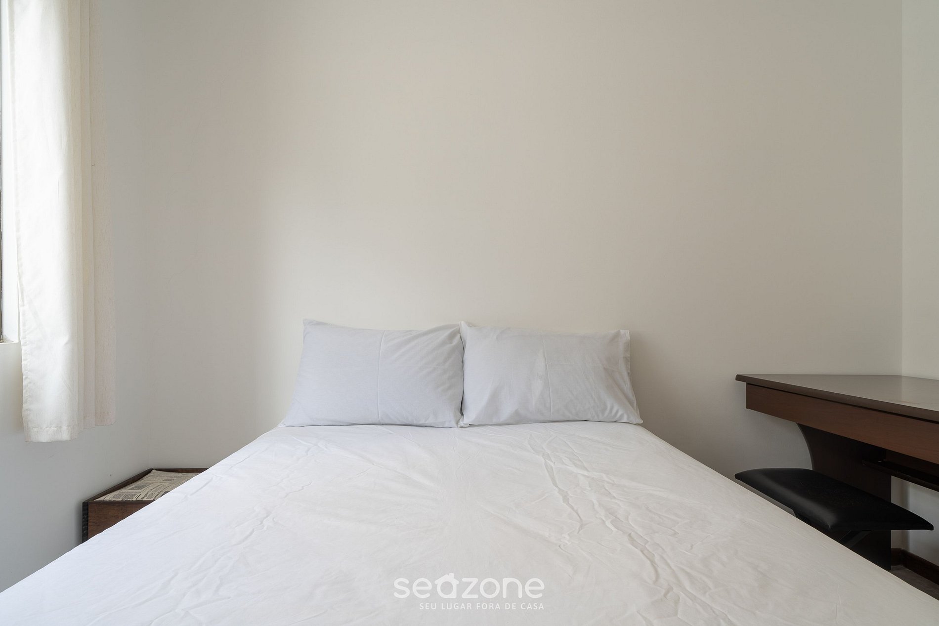 - 1 quarto com cama de casal, armário, cômoda e ar-condicionado;