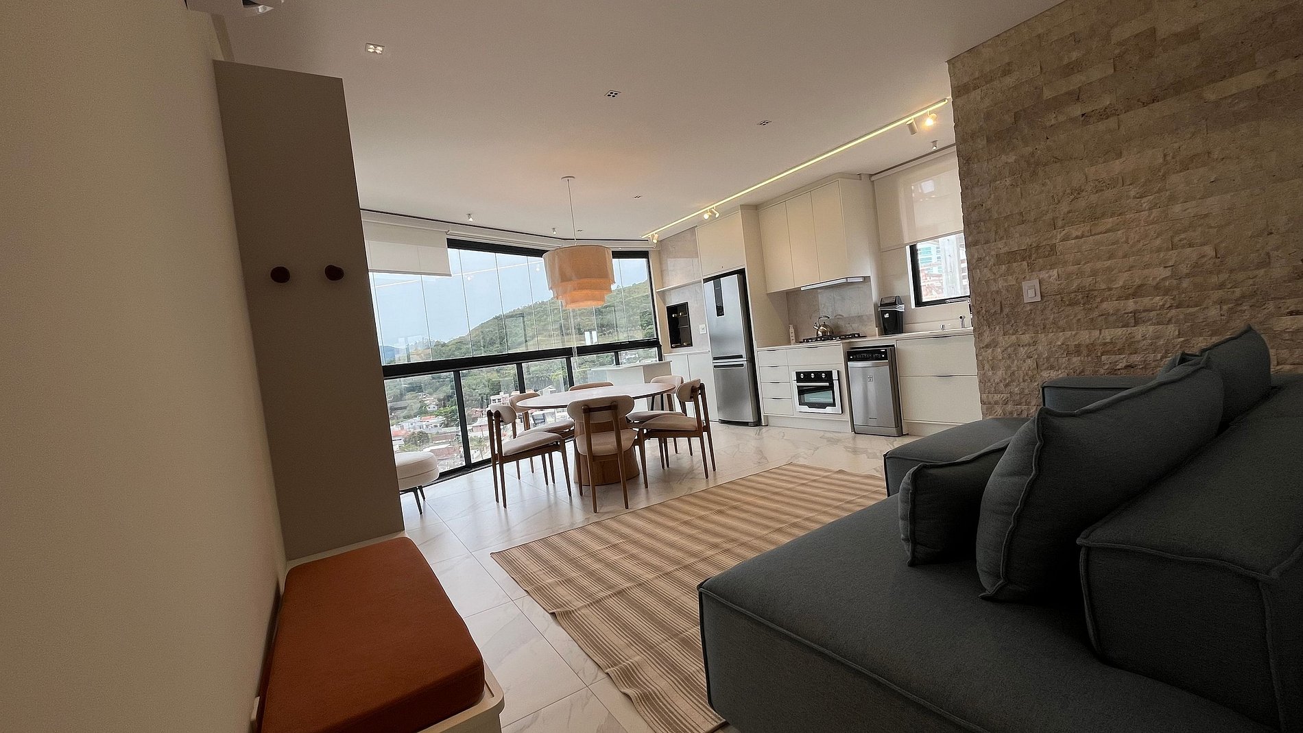 - Espaço para jantar com mesa e cadeiras;