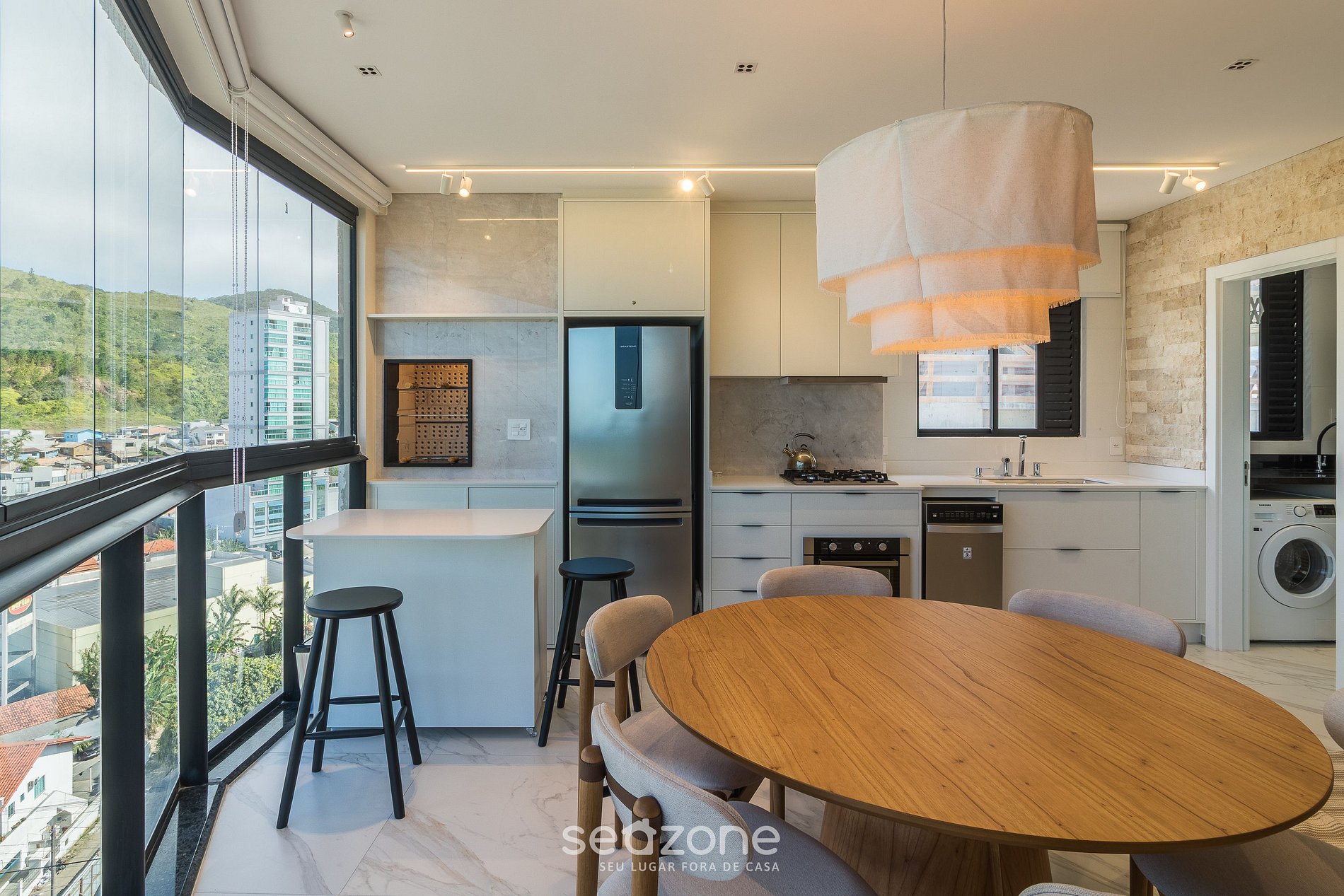Com vista parcial do mar e projeto elegante, este apartamento oferece ambientes integrados e climatizados. São duas suítes com Smart TVs e espaço para trabalho, sala ampla, cozinha completa e área gourmet com churrasqueira. Wi-Fi, lava e seca e duas vagas de garagem elevam a praticidade. A 300m da praia e perto de mercados, padarias e restaurantes, entrega alto padrão em cada detalhe.