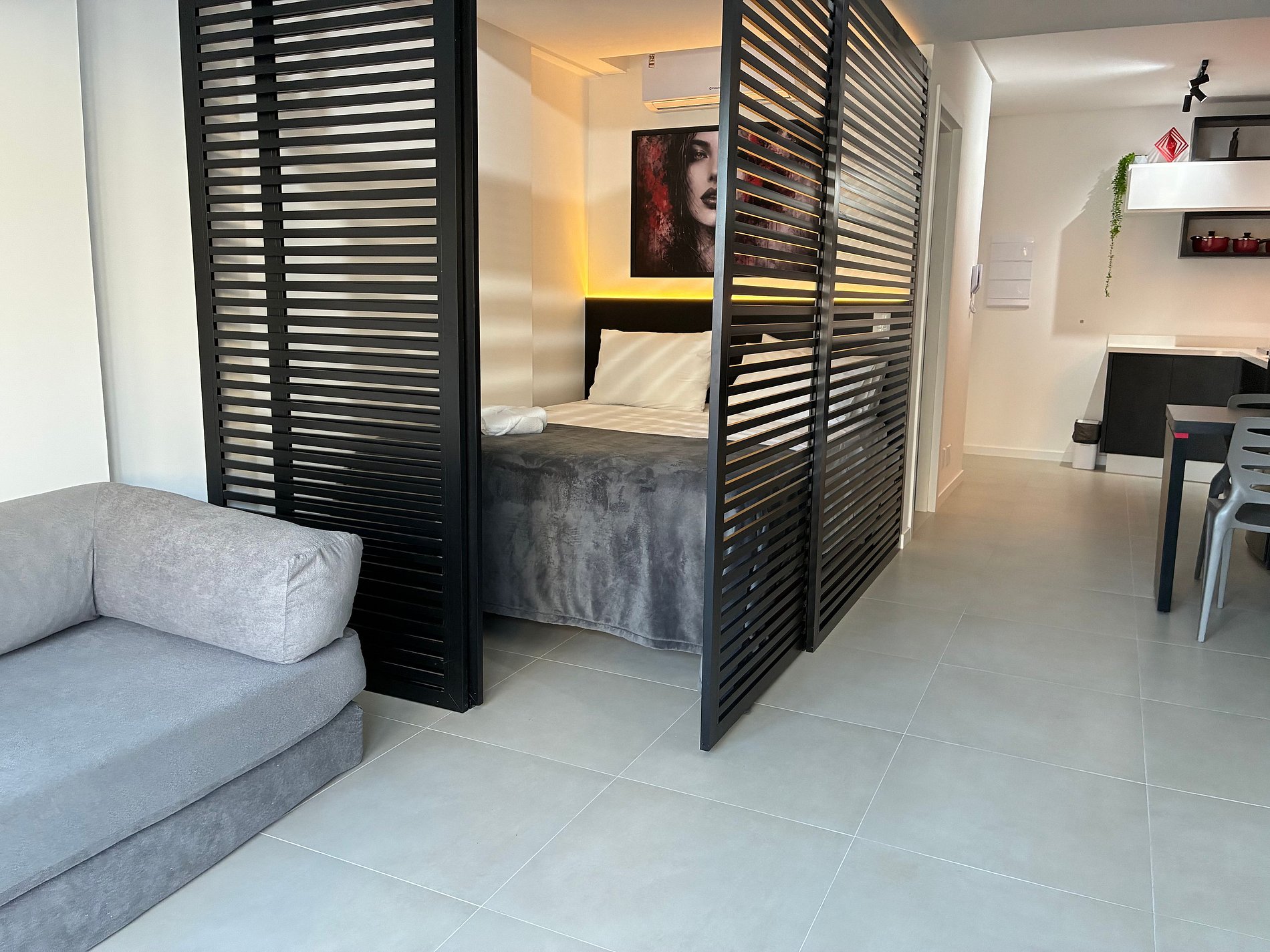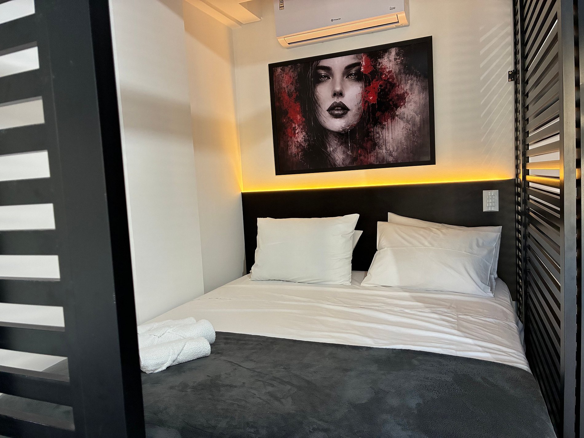 - Estúdio com 1 cama Queen size, arara e ar-condicionado;