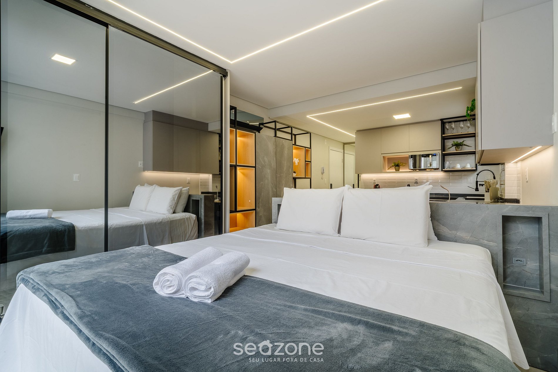 * Roupas de cama e banho de qualidade hoteleira (roupas de cama e toalhas extras são cobrados pela Seazone);