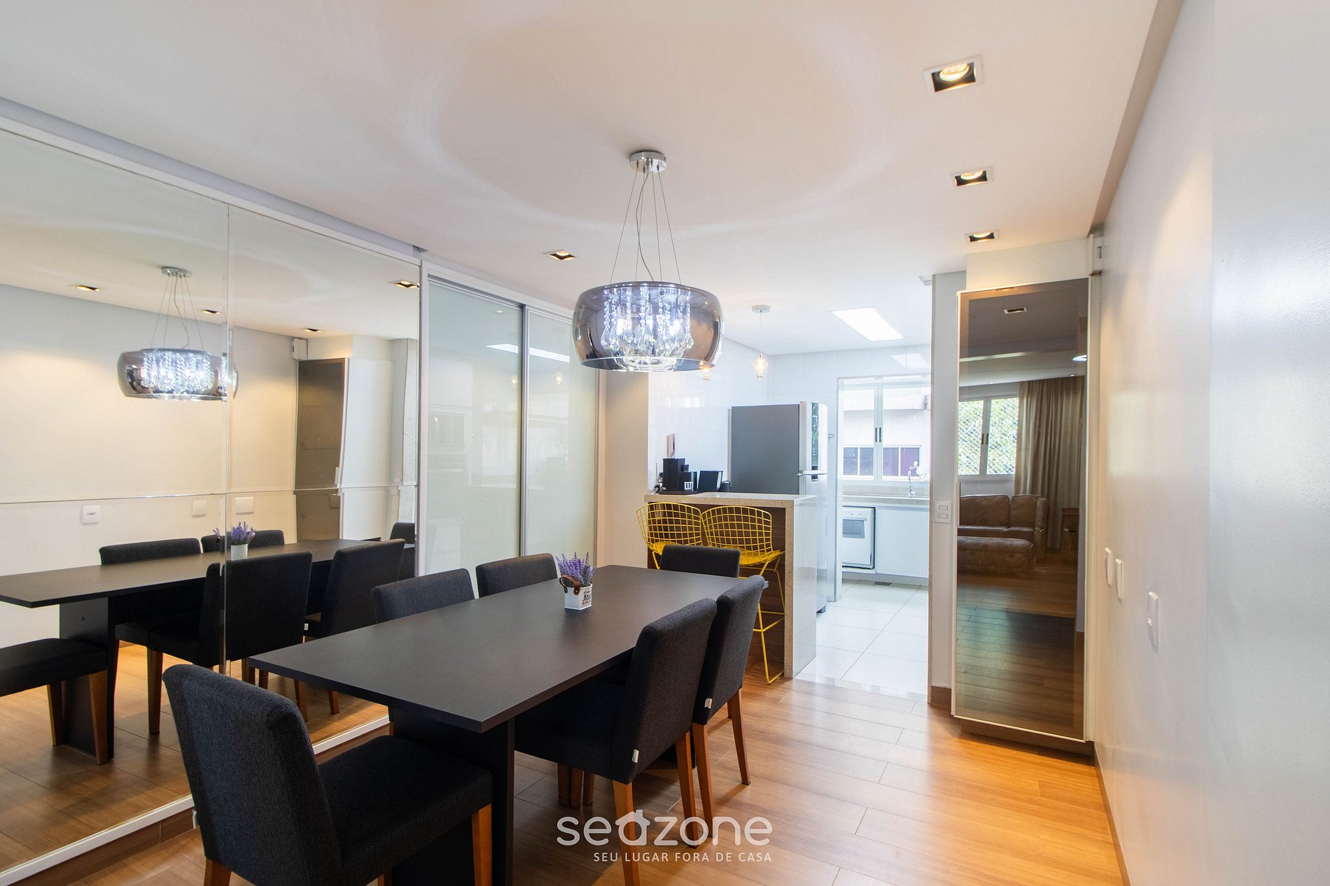 - Espaço para jantar com mesa e 6 cadeiras;