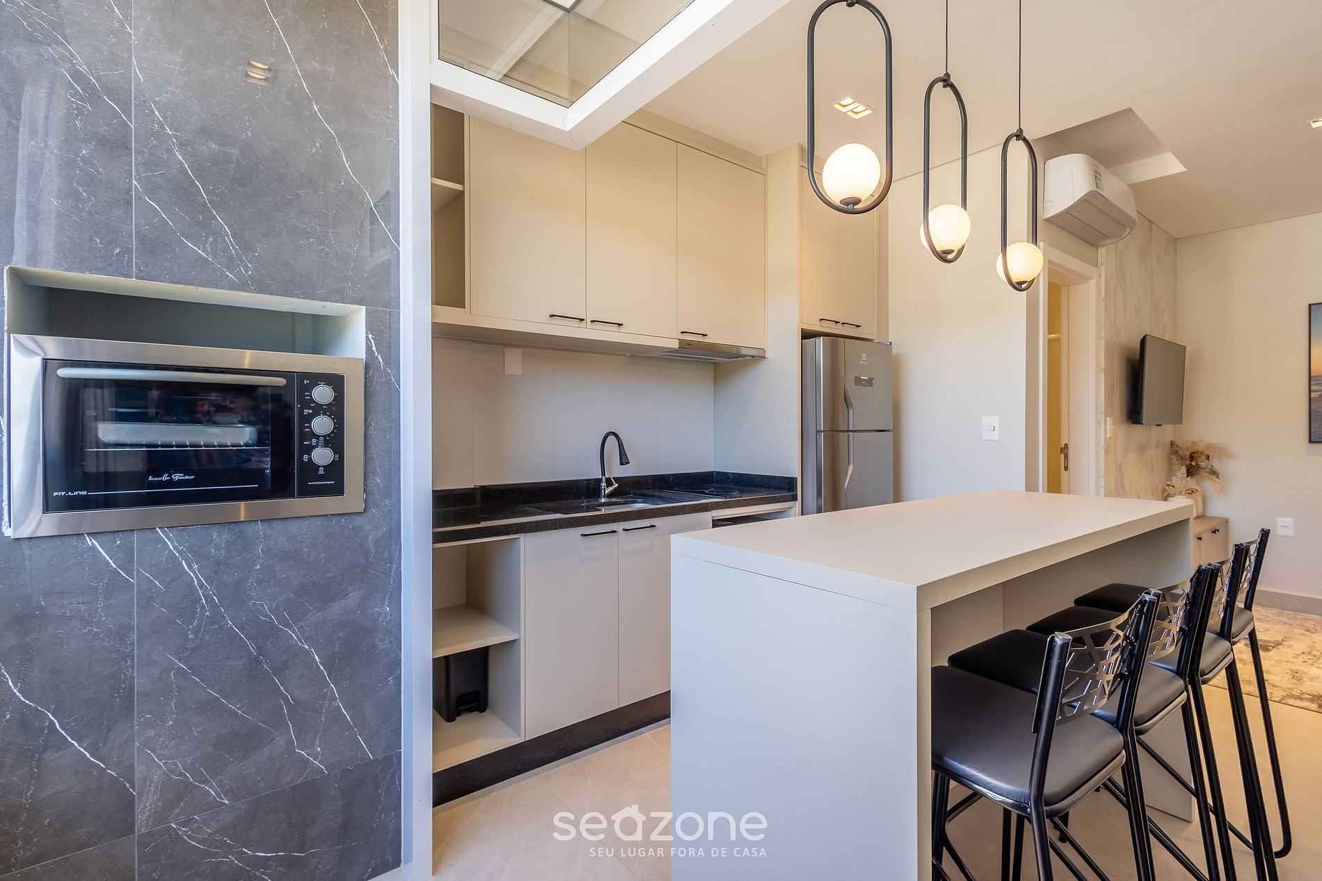 - Cozinha completa com geladeira, fogão cooktop (indução), forno elétrico (indução), micro-ondas, sanduicheira, cafeteira elétrica, chaleira elétrica, liquidificador, taças de vinho, panelas, louças e utensílios;