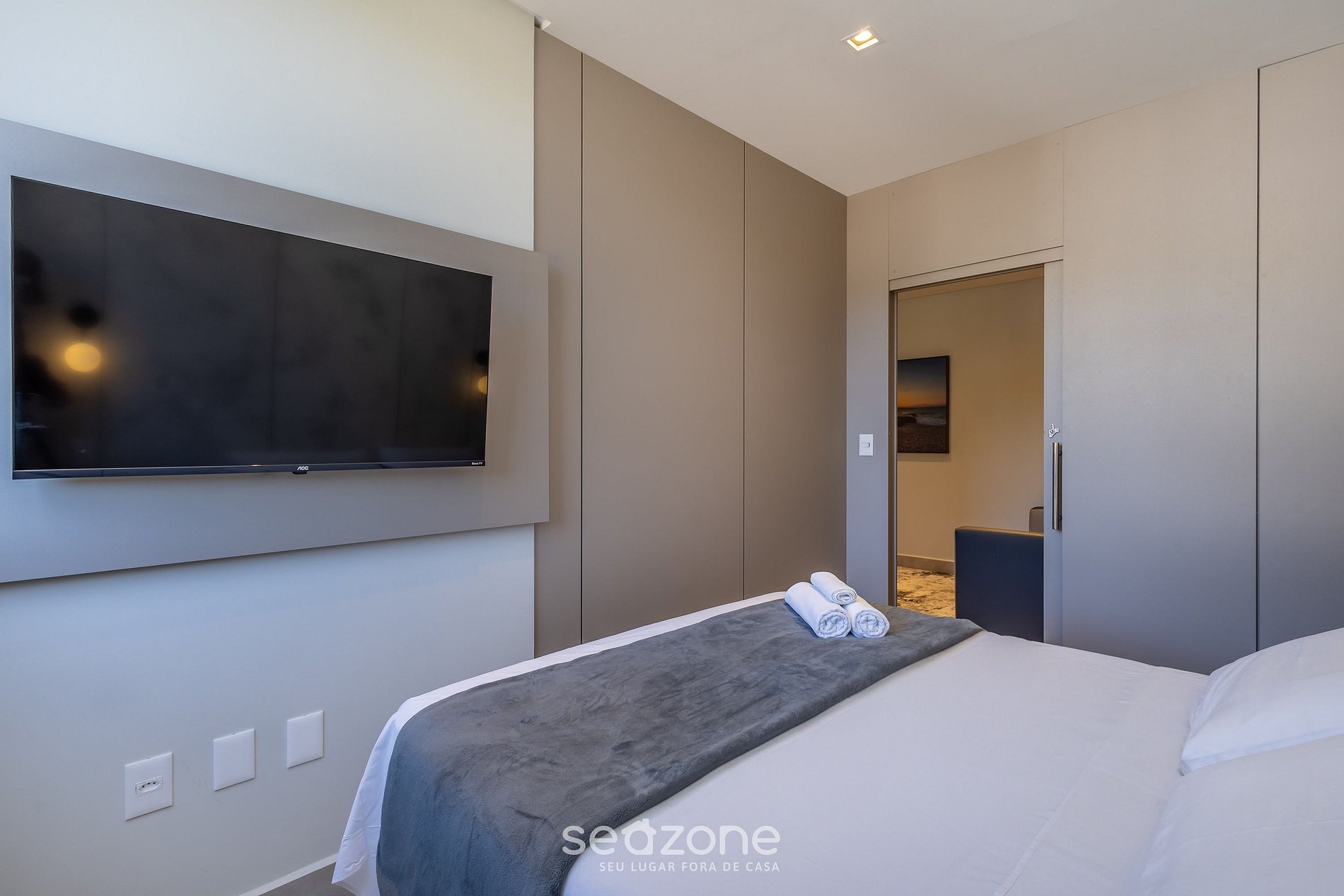 - 1 Quarto com cama queen, arara para roupas, armário, smart TV e ar-condicionado;