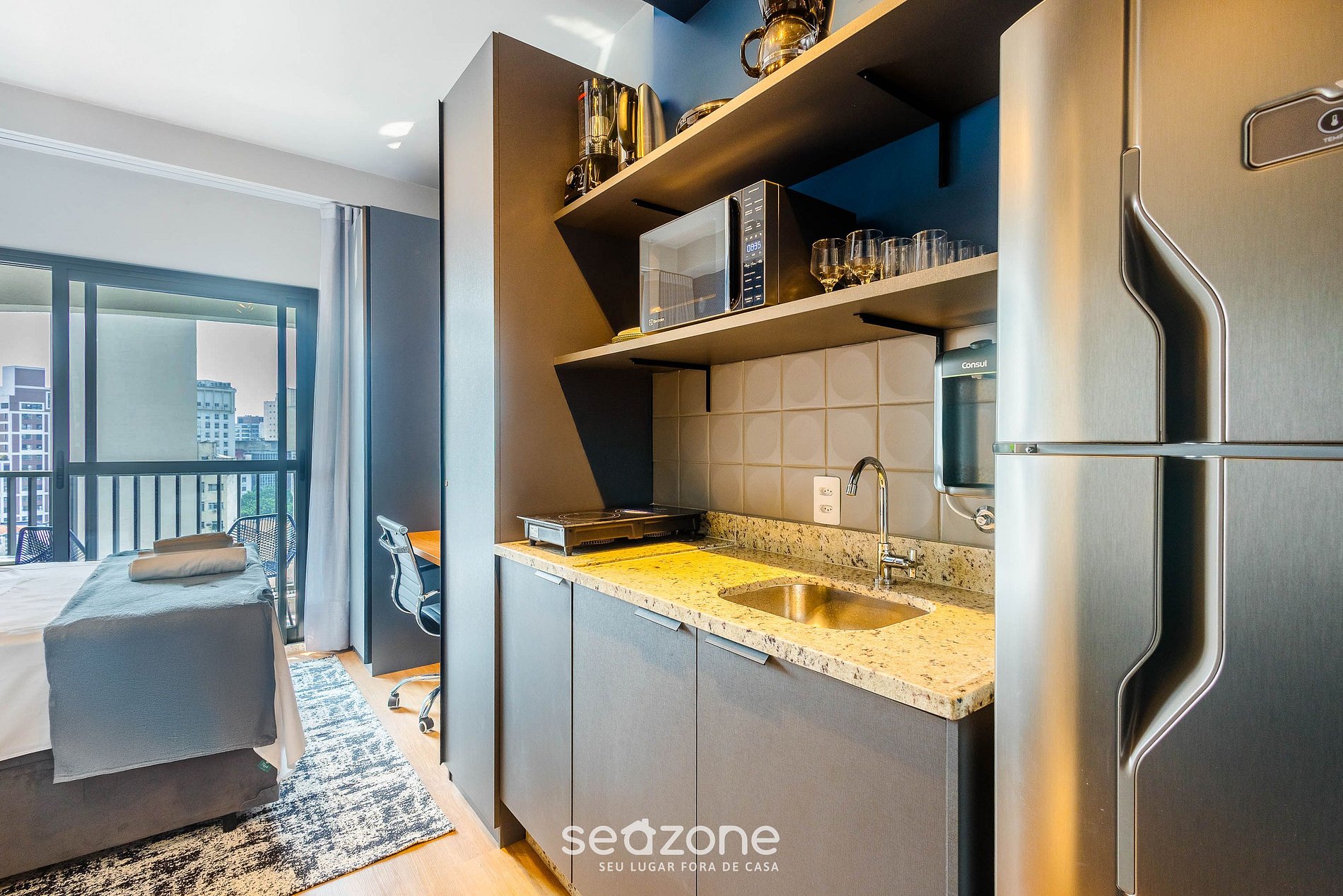 * Roupas de cama e banho de qualidade hoteleira (roupas de cama e toalhas extras são cobrados pela Seazone);