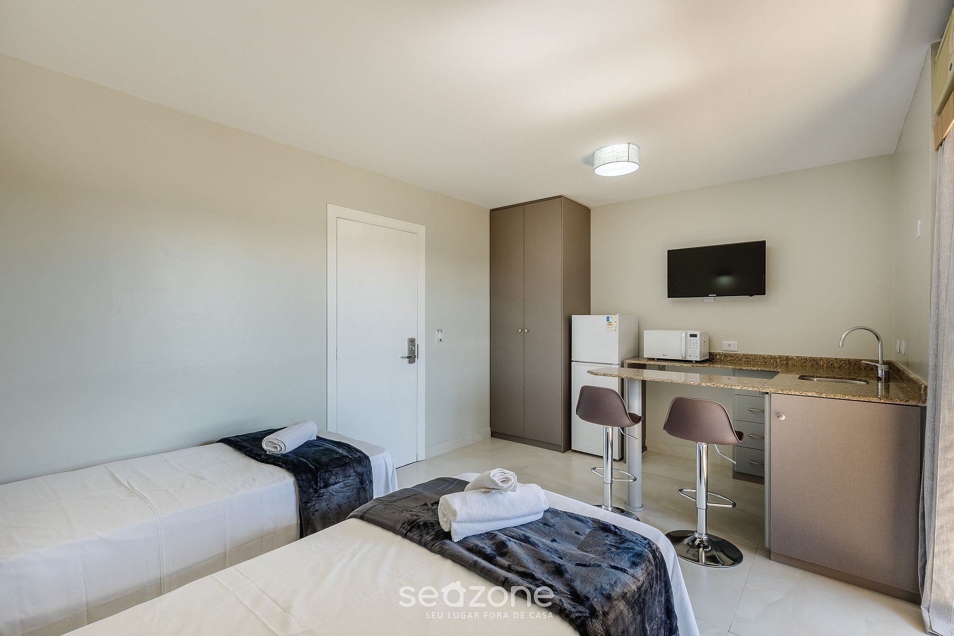 - Roupas de cama e banho de qualidade hoteleira (roupas de cama e toalhas extras são cobrados pela Seazone);