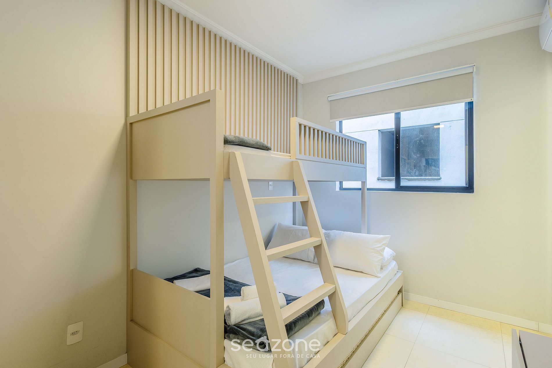 - 1 Suíte com cama de casal e 1 cama no beliche e 1 cama auxiliar de solteiro, Smart Tv, armário e ar-condicionado;