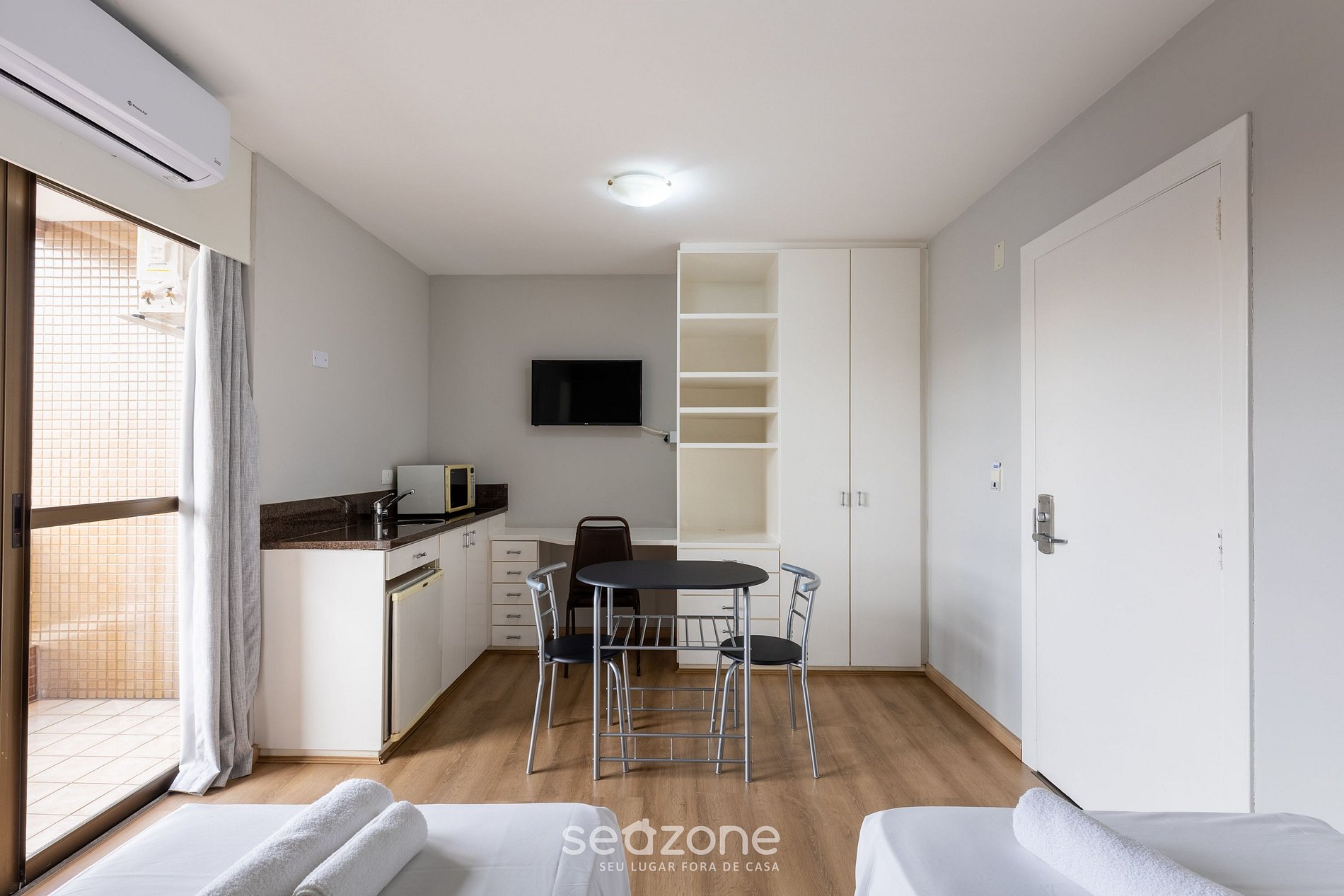 Praticidade, comodidade e lazer para sua viagem a Curitiba! Aqui, você terá acesso à academia do condomínio e ao salão de jogos. O estúdio é totalmente funcional com 2 camas de solteiro, ar-condicionado, Wi-Fi e TV. Desfrute de um momento de relaxamento na varanda. Um espaço que se adapta às suas necessidades de lazer e descanso na capital. Confirme sua reserva hoje mesmo!