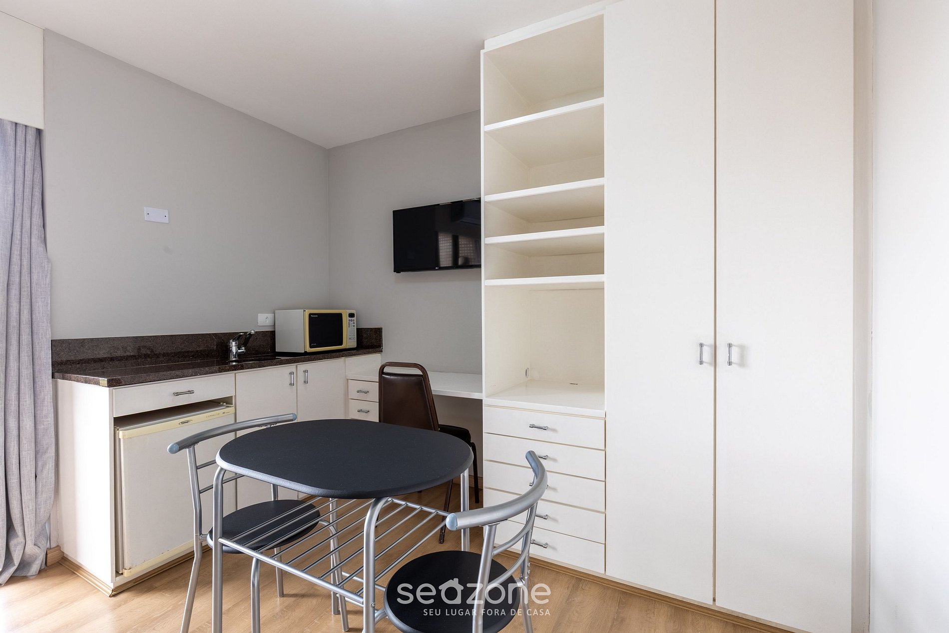 Praticidade, comodidade e lazer para sua viagem a Curitiba! Aqui, você terá acesso à piscina do condomínio e ao salão de jogos. O estúdio é totalmente funcional com 2 camas de solteiro, ar-condicionado, Wi-Fi e TV. Desfrute de um momento de relaxamento na varanda. Um espaço que se adapta às suas necessidades de lazer e descanso na capital.