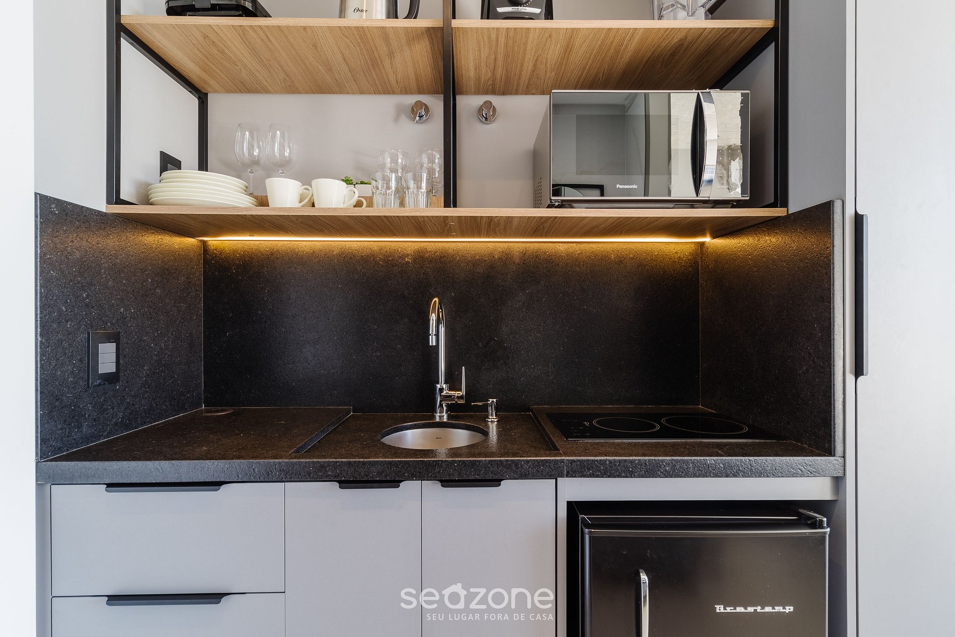 - Cooktop elétrico com 2 bocas;