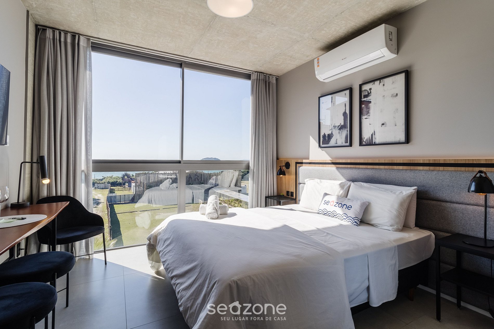 - Roupas de cama e banho de qualidade hoteleira (roupas de cama e toalhas extras são cobrados pela Seazone);