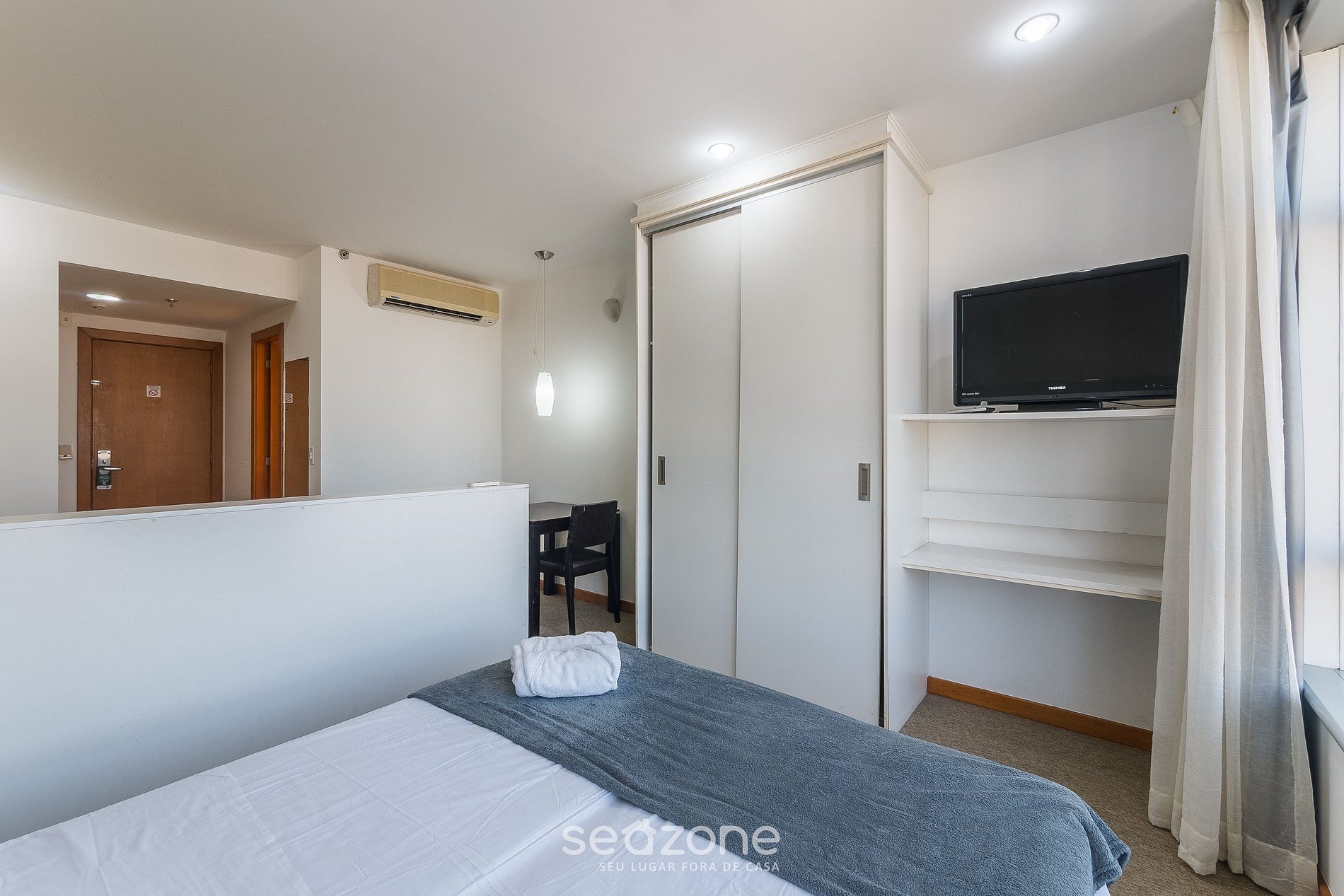 - Roupas de cama e banho de qualidade hoteleira (roupas de cama e toalhas extras são cobrados pela Seazone);