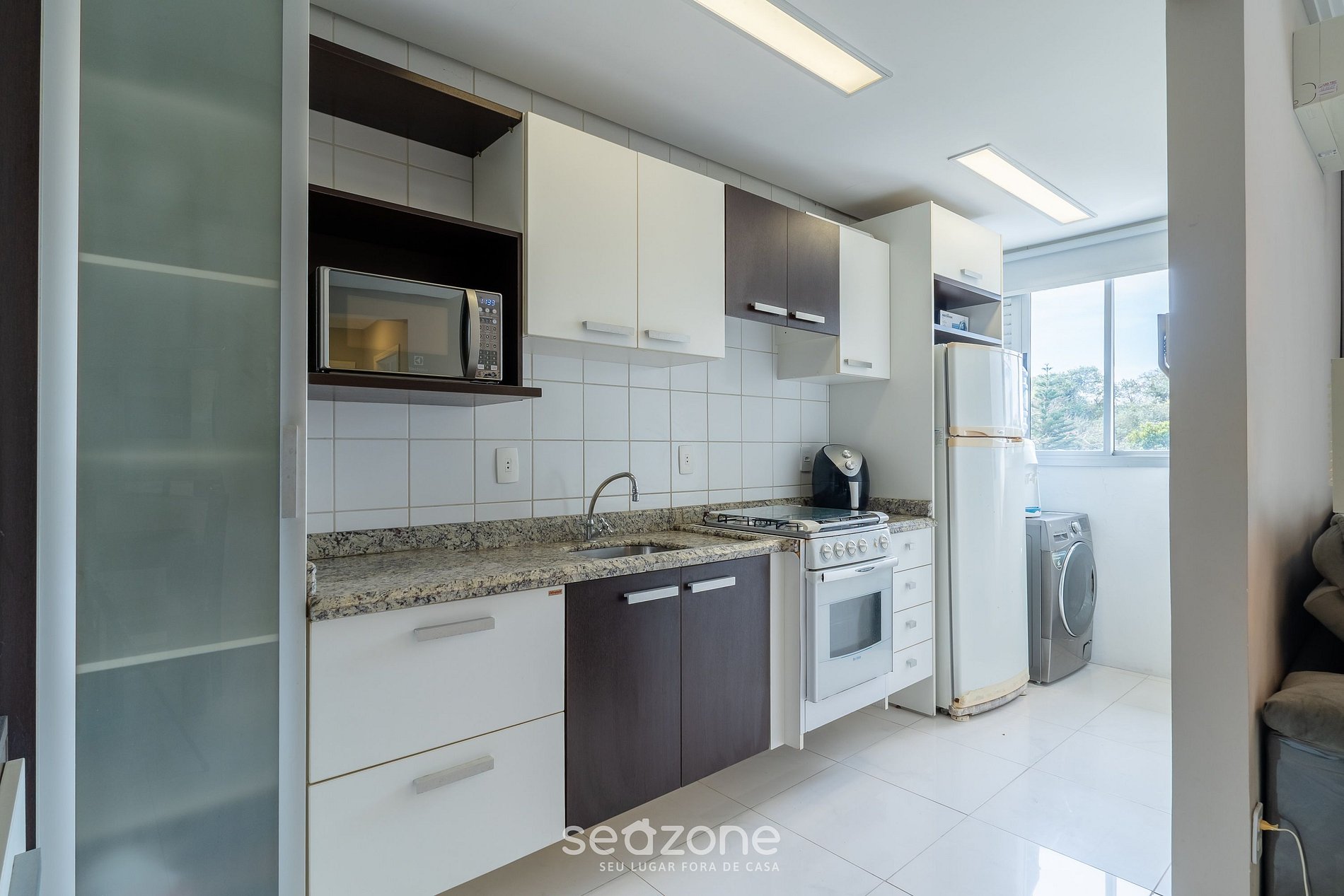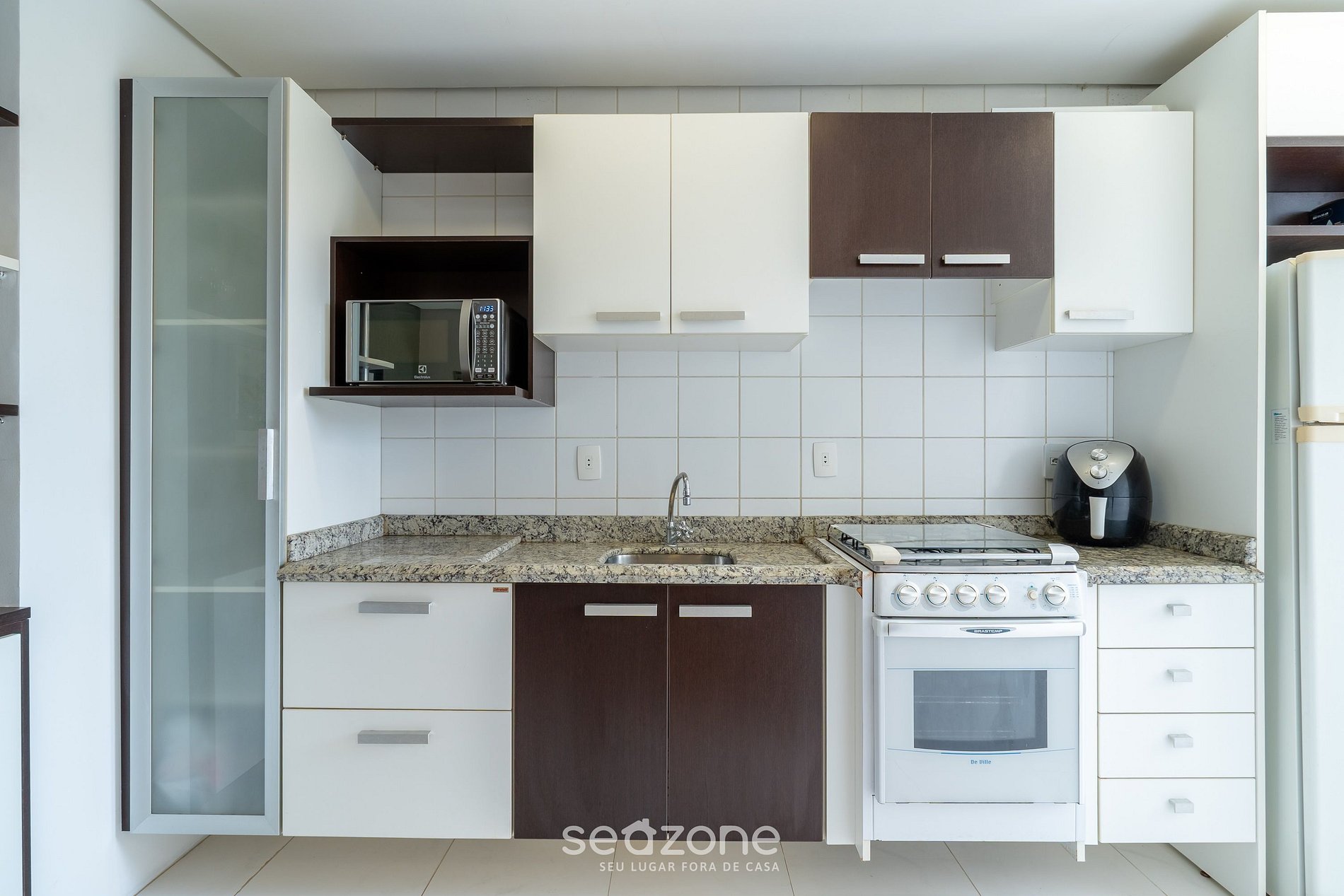 - Cozinha completa com geladeira, fogão cooktop (gás), forno elétrico, airfryer, micro-ondas, sanduicheira, cafeteira elétrica, chaleira elétrica, liquidificador, taças de vinho, panelas, louças e utensílios;