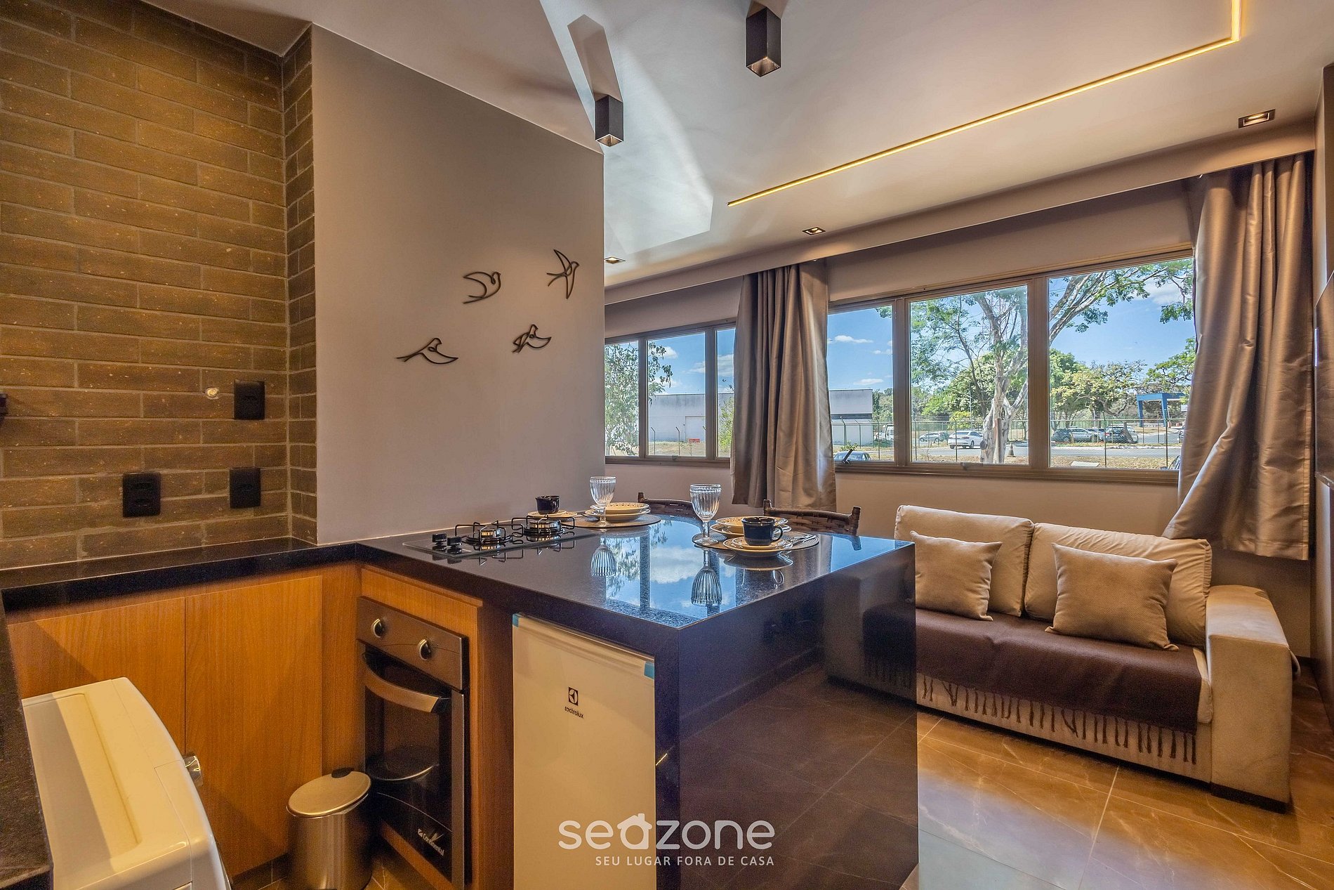 Conforto e funcionalidade esperam por você neste estúdio em Brasília. Equipado com uma aconchegante cama de casal, smart TV para seus filmes favoritos e ar-condicionado para o clima ideal, este espaço foi pensado para o seu bem-estar. A cozinha prática e completa permite que você prepare suas próprias refeições. Este é o refúgio perfeito para relaxar após um dia na cidade. Não perca tempo, reserve já a sua estadia!