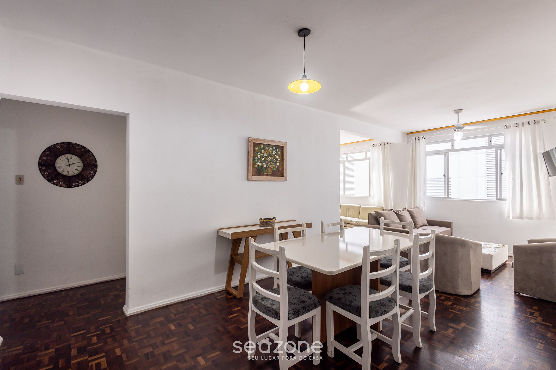 - Espaço para jantar com mesa e 6 cadeiras;
