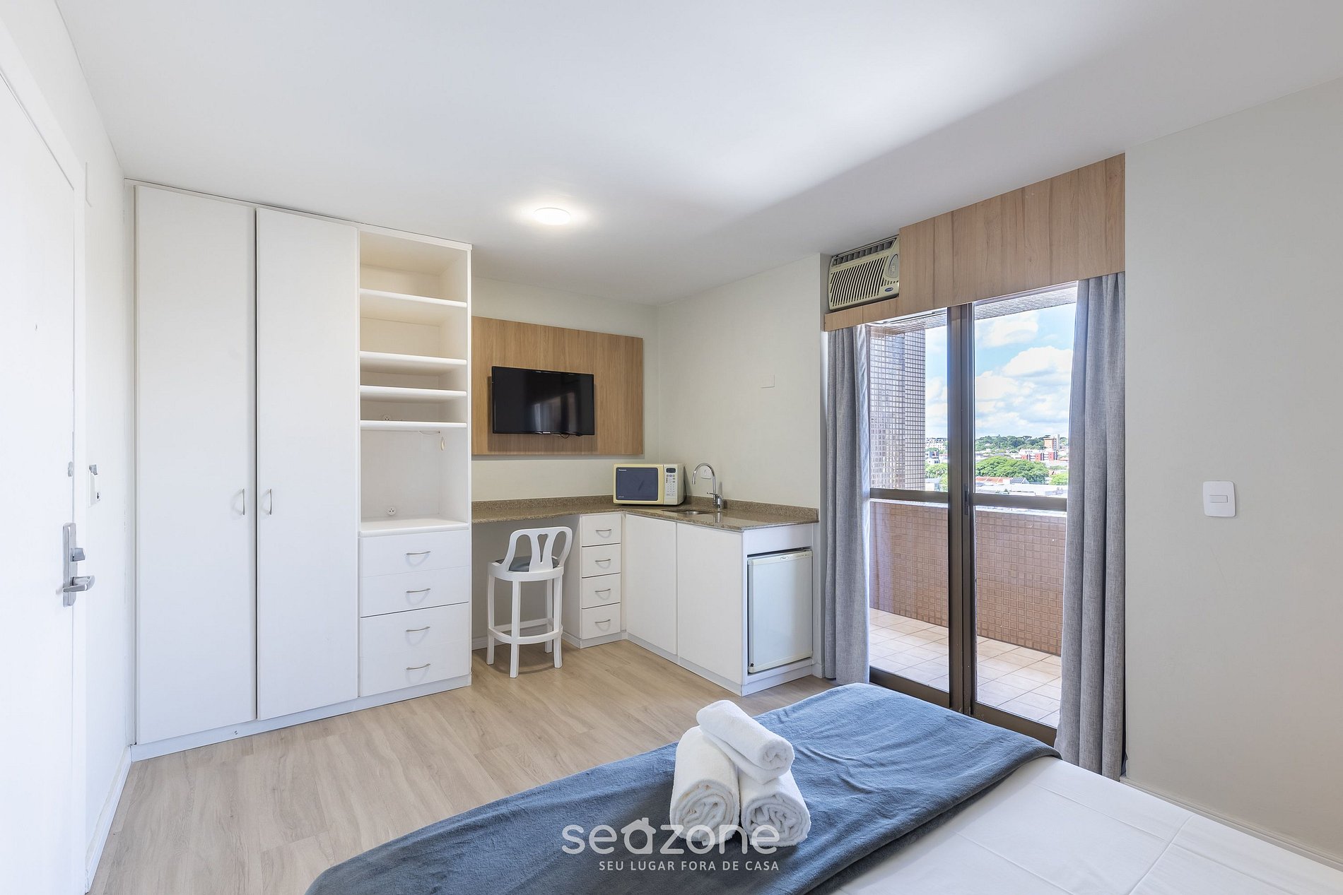 - Roupas de cama e banho de qualidade hoteleira (roupas de cama e toalhas extras são cobrados pela Seazone);