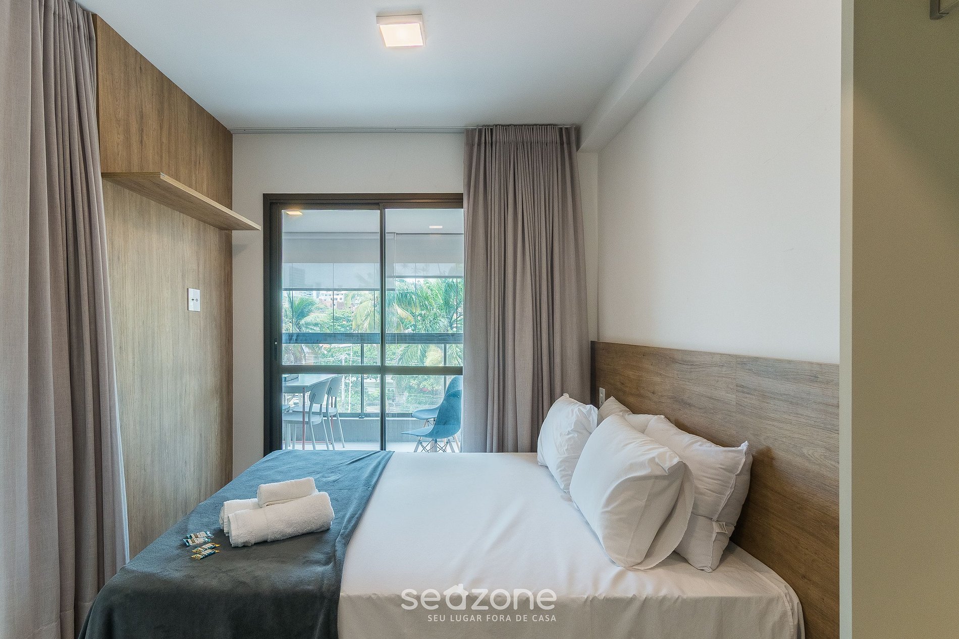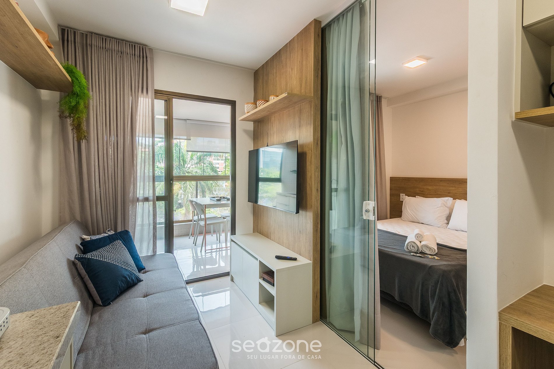 A poucos passos da praia, este apto integrado oferece suíte climatizada, sala com sofá-cama e Smart TV, cozinha completa, mesa para jantar/trabalho e Wi-Fi elevam o conforto. O prédio conta com piscina, academia e coworking. A 290m da praia, cercado por restaurantes, padarias, mercados e pelo circuito Barra–Ondina.