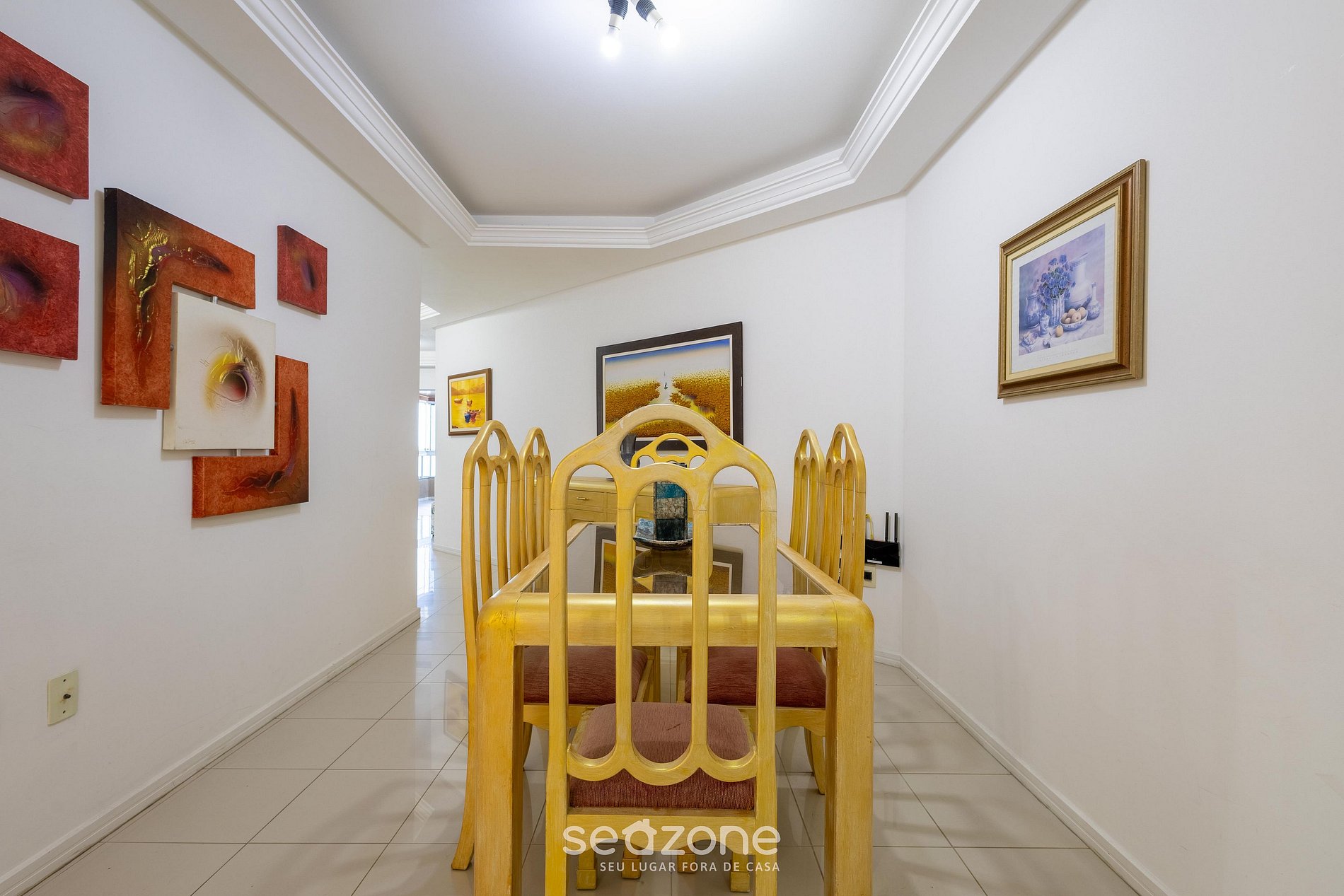 - Espaço para jantar com mesa e 6 cadeiras;