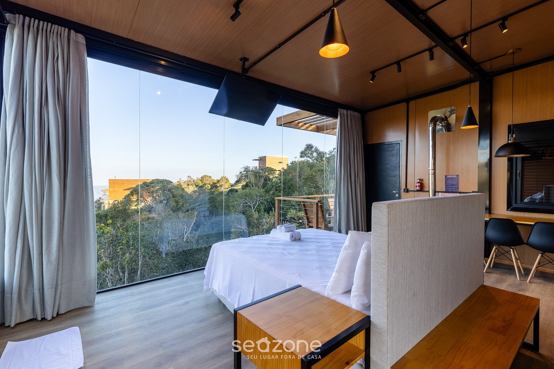 Unindo o rústico ao sofisticado, essa cabana é o ambiente ideal para uma hospedagem de luxo em meio a natureza. Além de aconchegante, oferece uma vista deslumbrante das montanhas, perfeita para aproveitar dias românticos a dois.