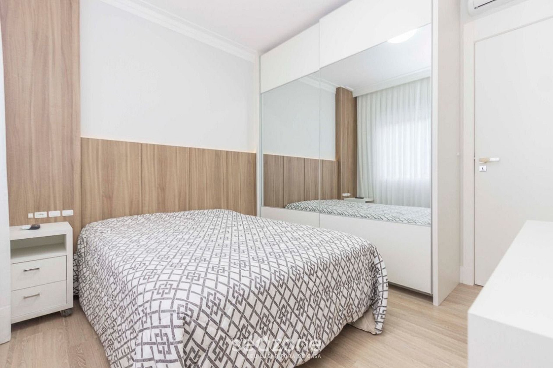 - 1 suíte com cama de casal, móveis planejados, TV e ar condicionado;