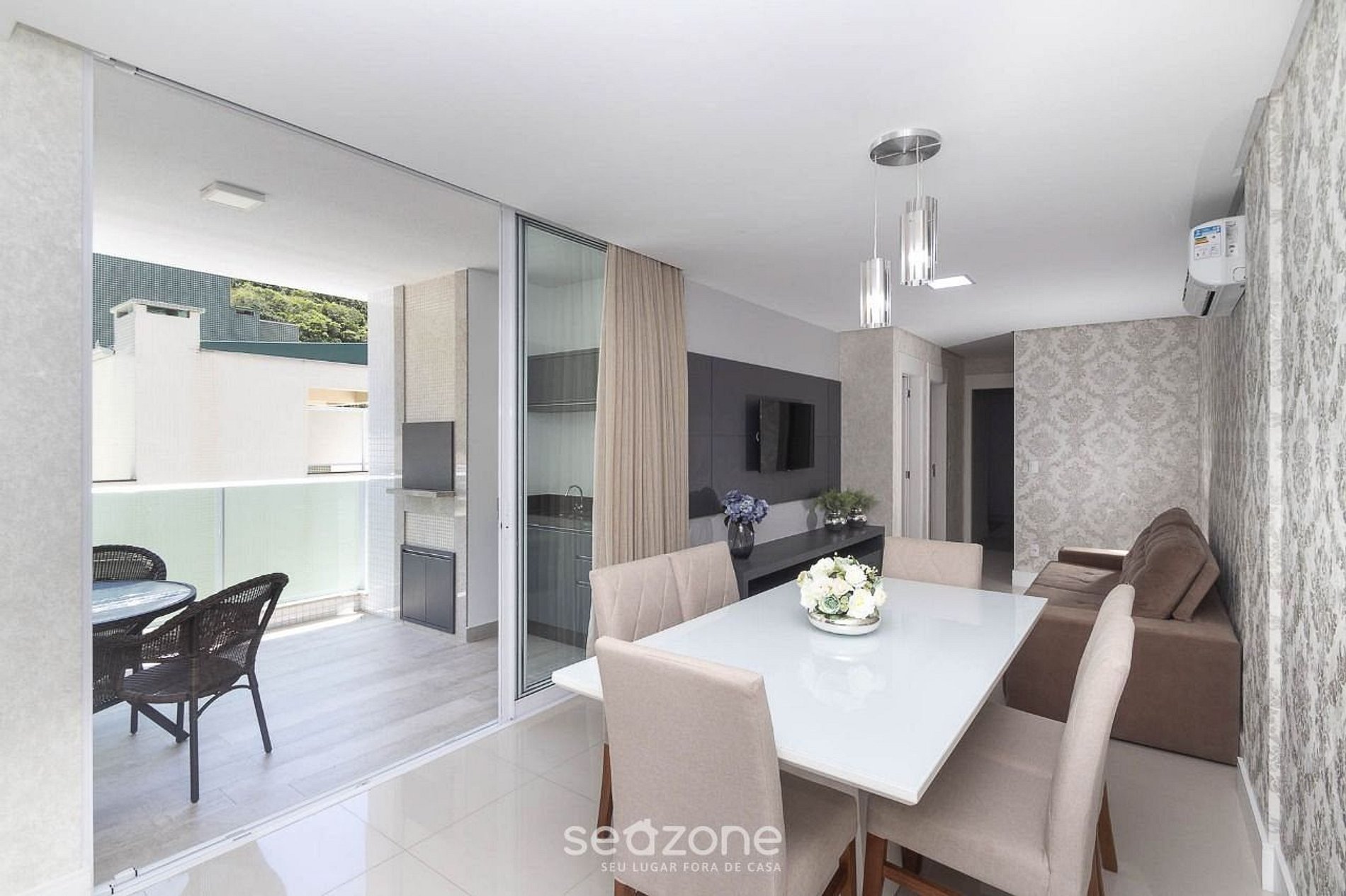 - Varanda com móveis externos, pia e churrasqueira;