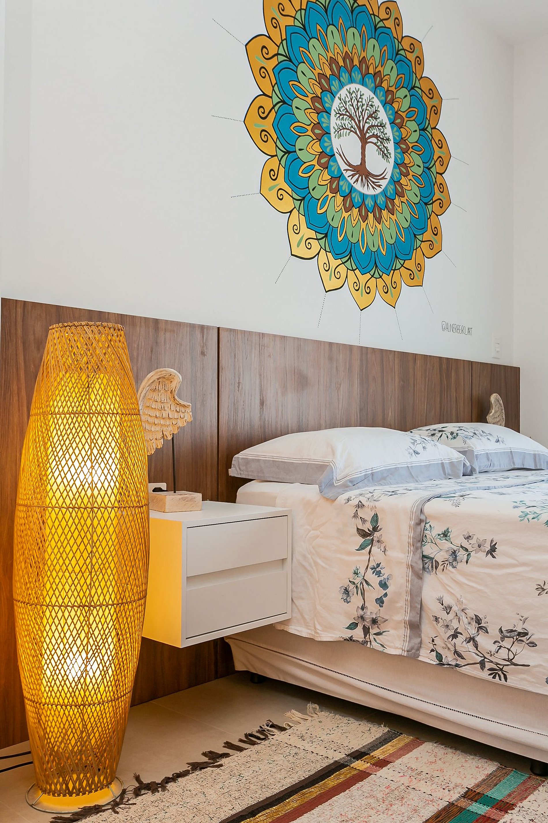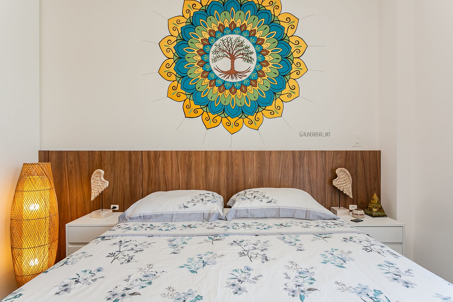 - 1 quarto com cama queen, armário modular, mesas de cabeceira e varanda;