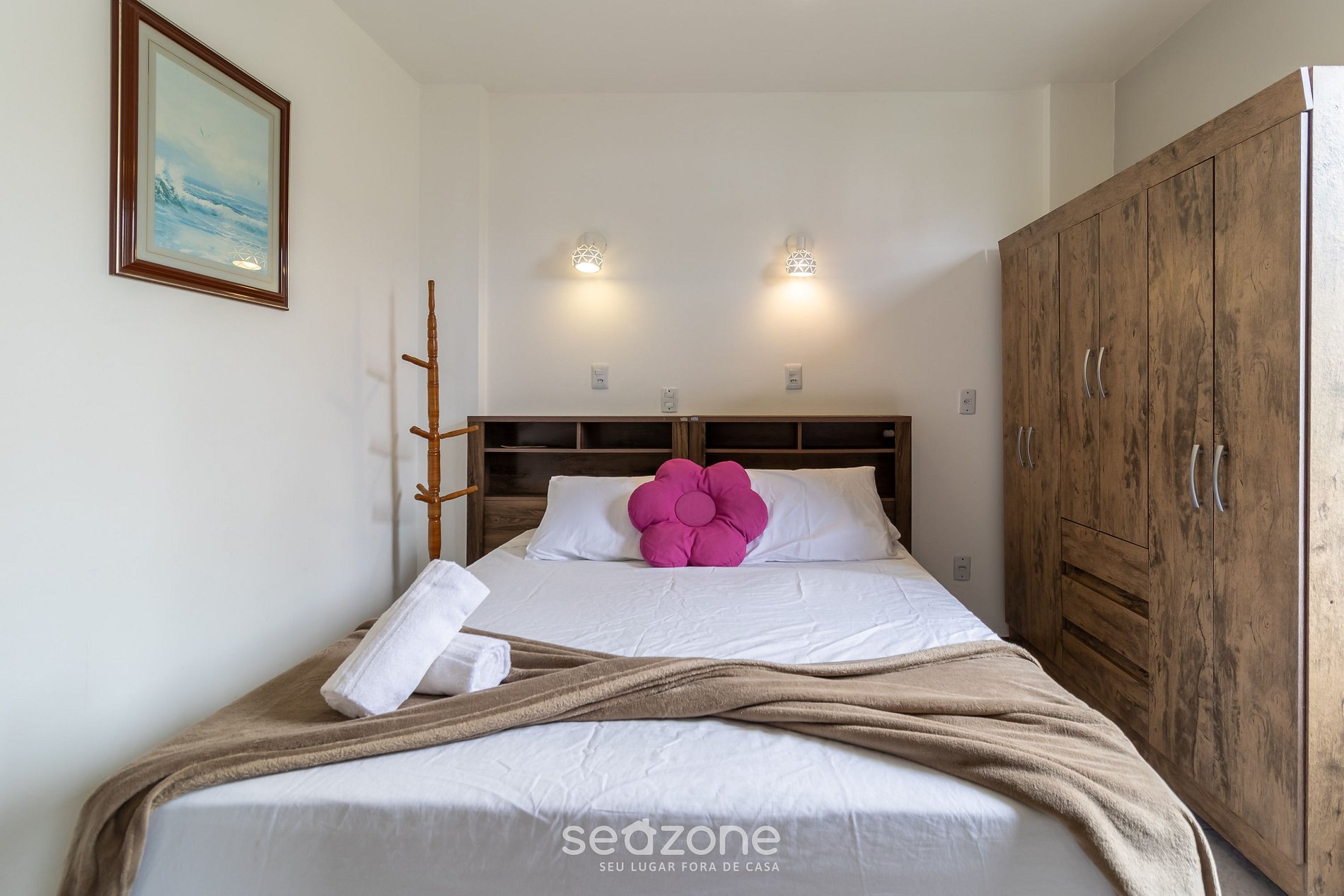 - 1 Quarto com cama de casal queen size, armário e ar-condicionado;