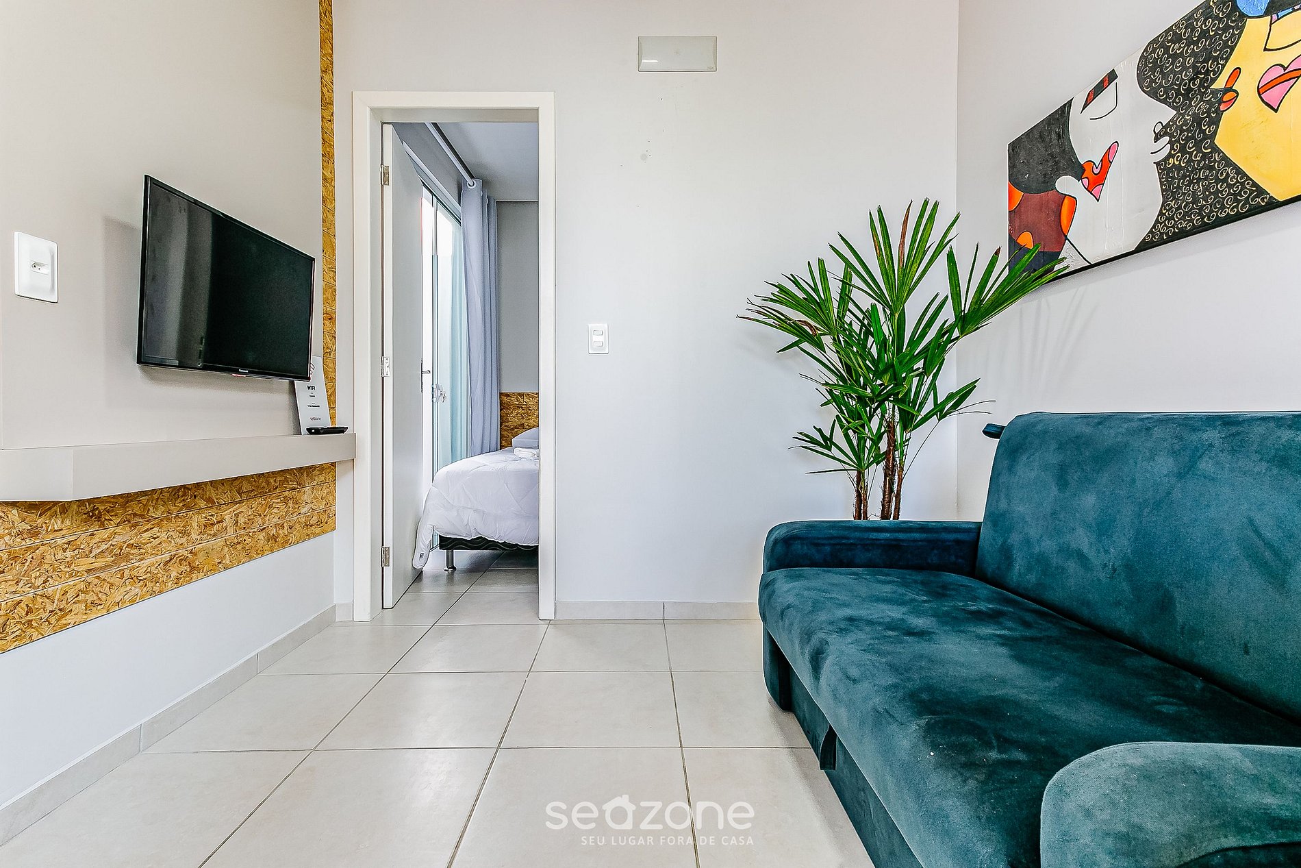 - 1 quarto com cama de casal e ar condicionado; - Sala de estar com sofá-cama de casal e TV tela plana;