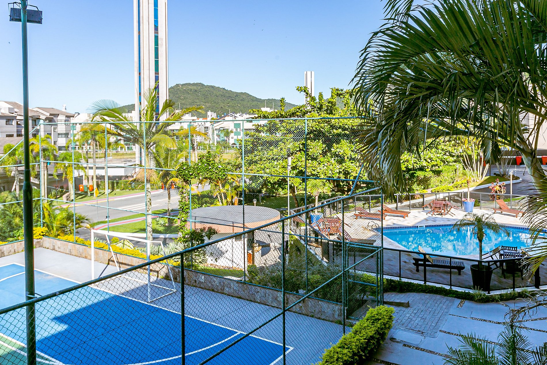 * O condomínio oferece acesso a uma belíssima piscina e uma quadra poliesportiva.