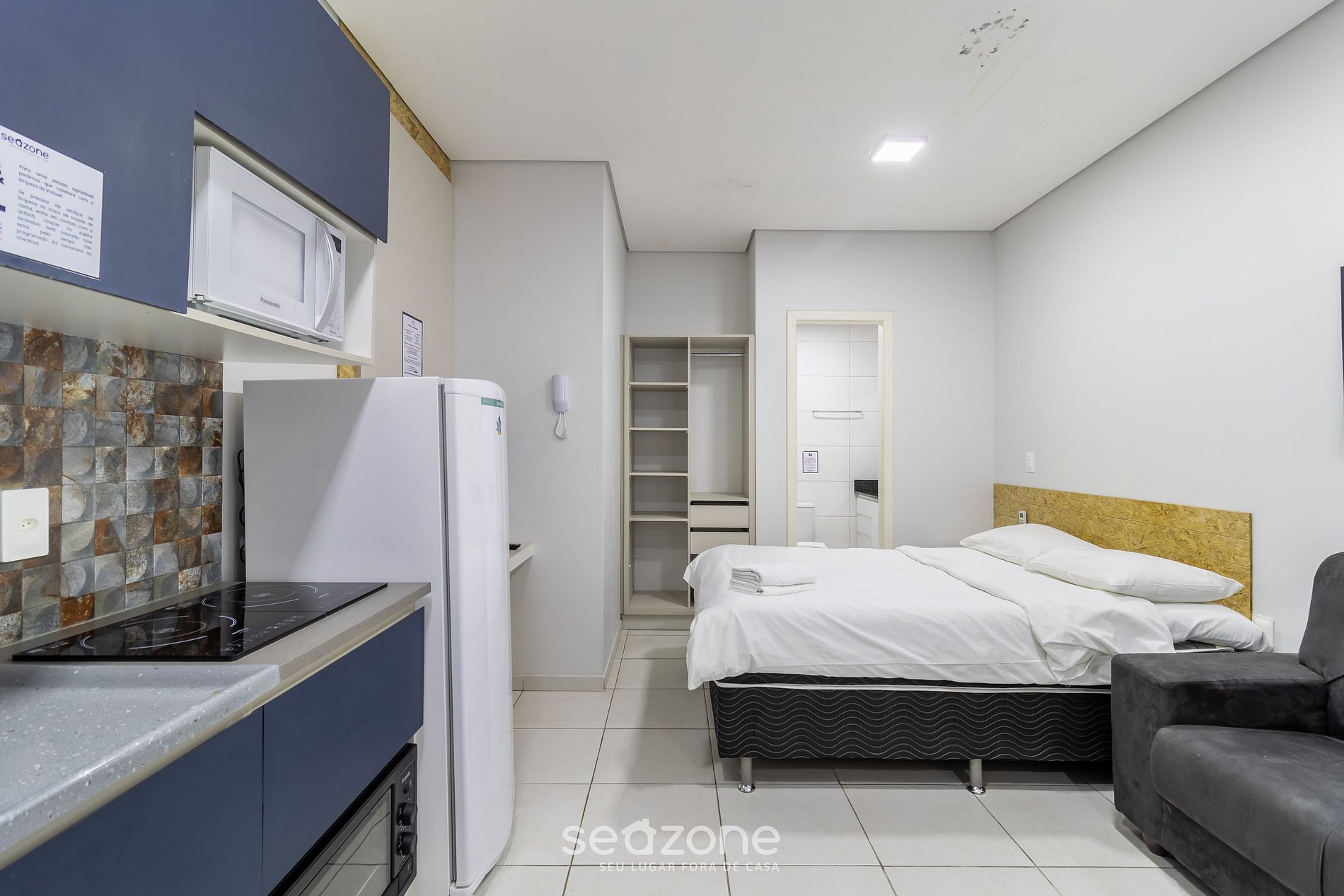 - Roupas de cama e banho de qualidade hoteleira (roupas de cama extra são cobrados pela Seazone);