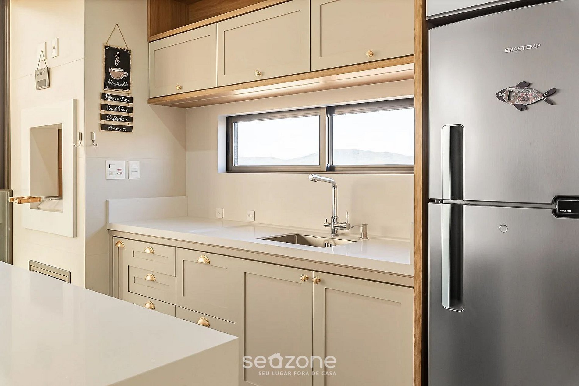 - Cozinha completa com geladeira, fogão cooktop, forno, micro-ondas, Airfryer, Cervejeira Consul, sanduicheira, liquidificador, cafeteira, panelas, louças e utensílios;
