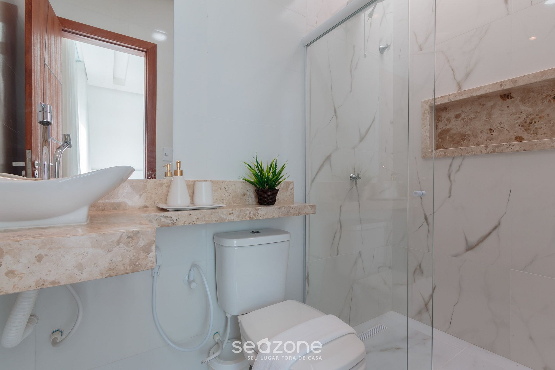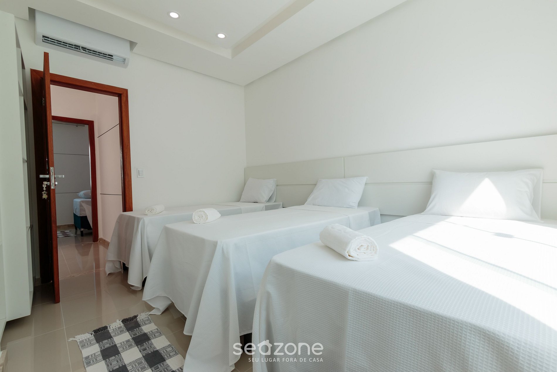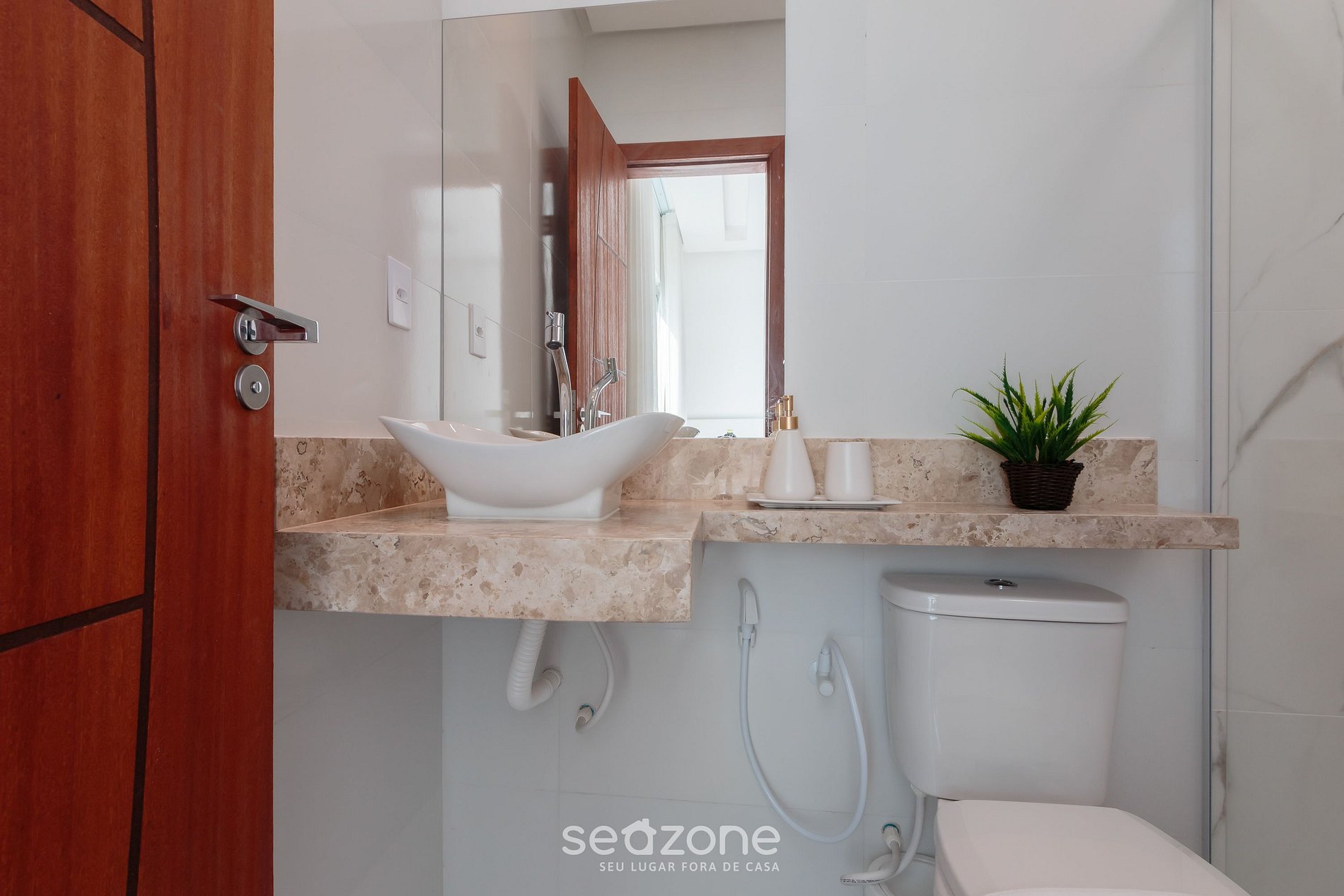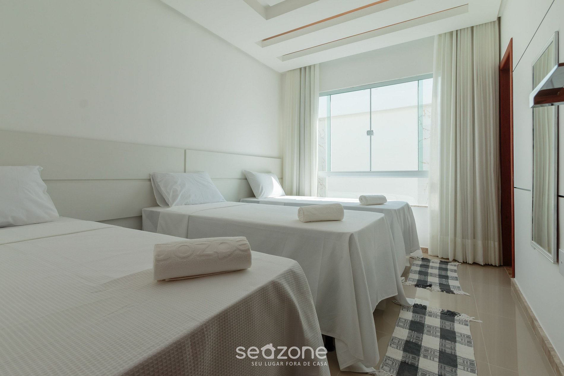- Roupas de cama/banho e limpeza extras são solicitadas e pagas à parte, direto com a Seazone;