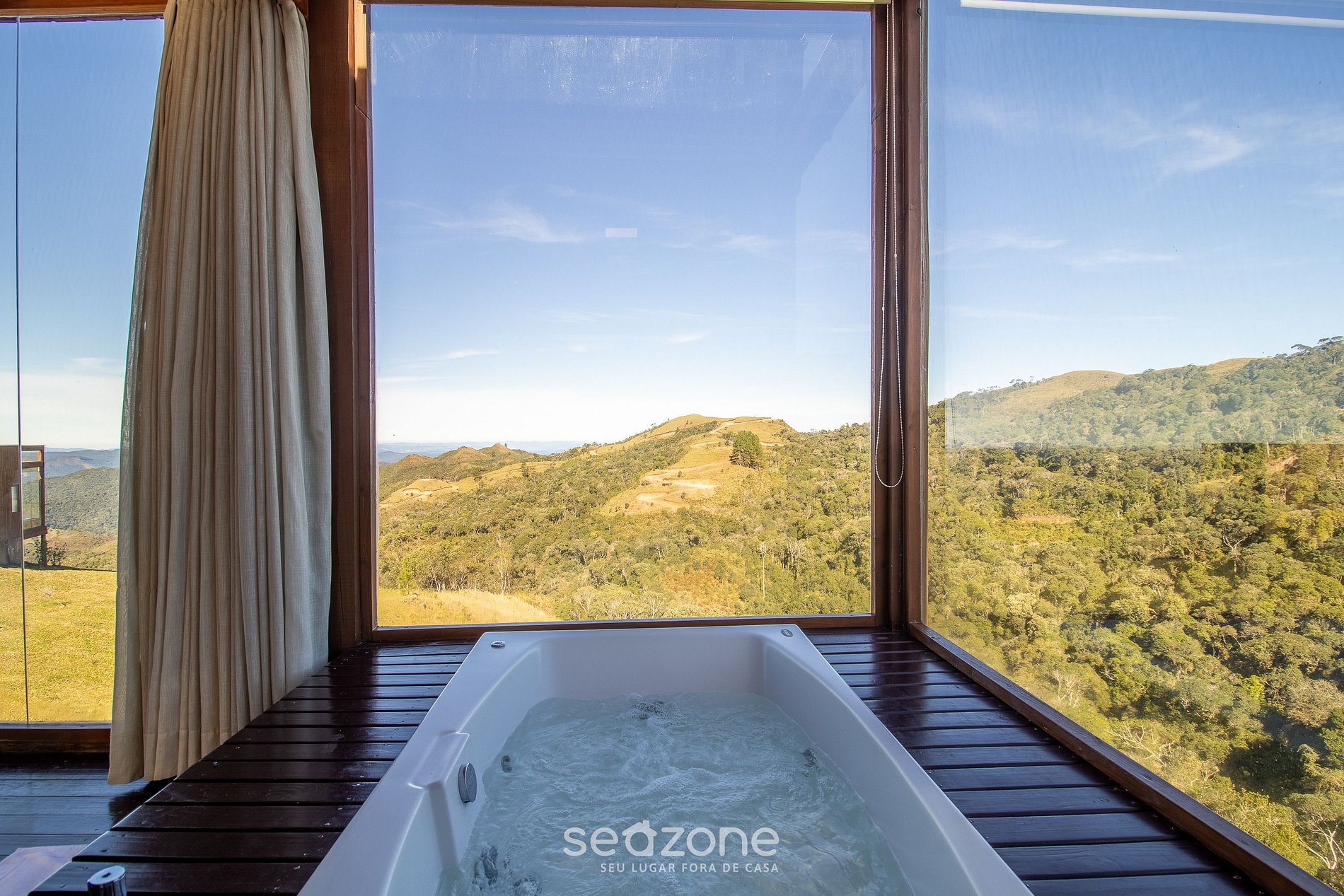Unindo o rústico ao sofisticado, essa cabana é o ambiente ideal para uma hospedagem de luxo em meio a natureza. Além de aconchegante, oferece uma vista deslumbrante das montanhas, perfeita para aproveitar dias românticos a dois.